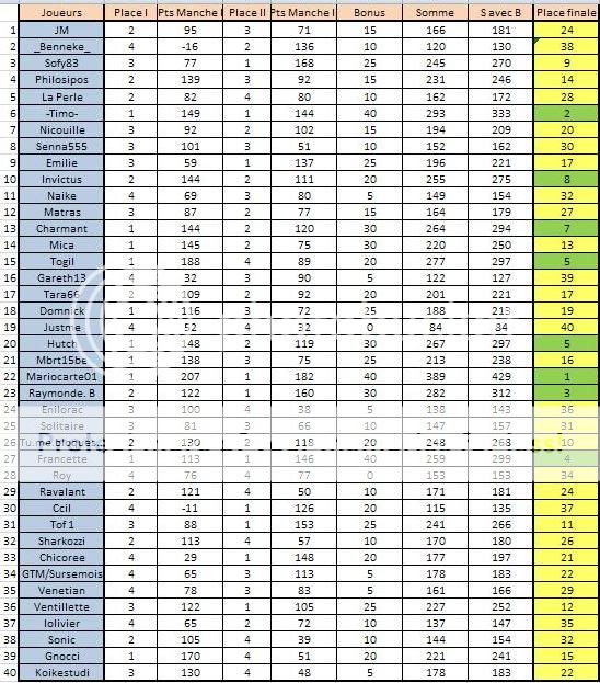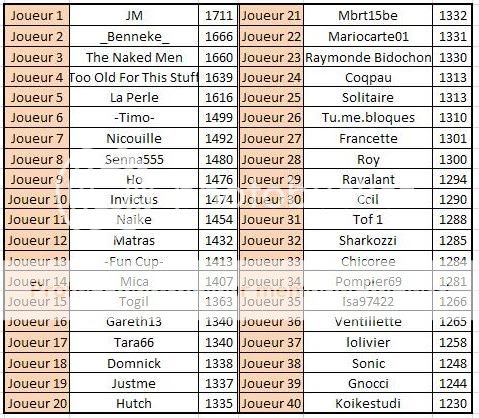 Je publie les tables dans un instant! Rendez-vous à 21h et félicitations 🙂