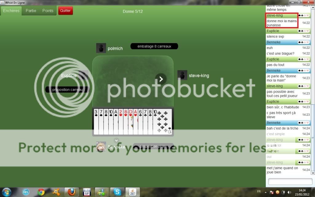 Je rajouterais qu’il se permet de dire à ses partenaires que faire pendant les mains… Évidemment avec de telles pratiques c’est facile le whist ^^