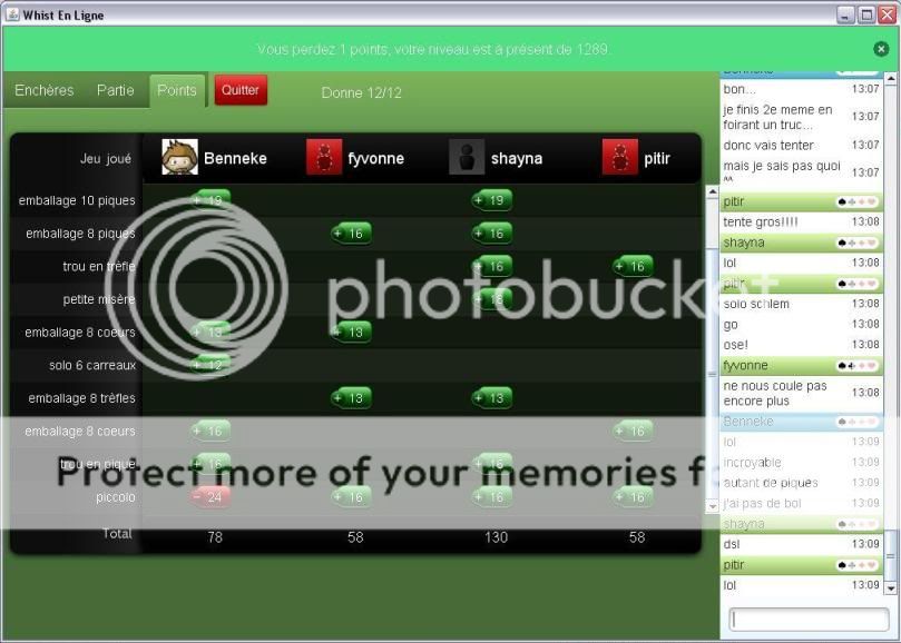 Le whist est un plaisir, et jouer avec des gens qui ont +-20.000 exp/ et +-1.100 niveau, il ne faut pas avoir fait « math+6  » pour deviner que tout n’est pas de la faute des décos.
