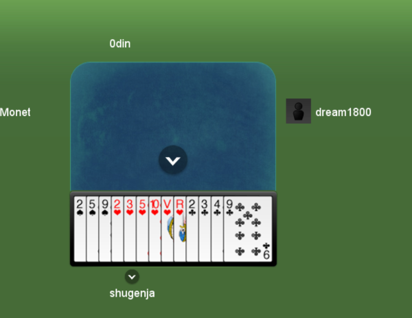 [Comme déjà expliqué avant, j’ai d’abord joué 9X coeur et évidemment que les autres ont jeté des carreaux car il y a deux autres couleurs à garder aussi