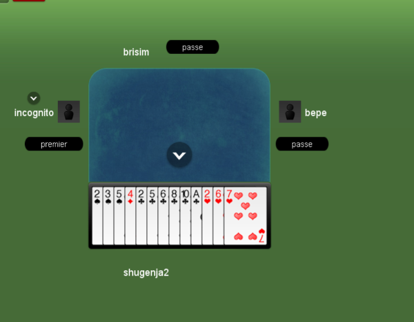 Comme déjà expliqué avant, j’ai d’abord joué 9X coeur et évidemment que les autres ont jeté des carreaux car il y a deux autres couleurs à garder aussi